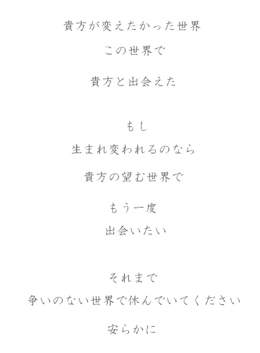 願わくば、ティエはロクの分も生き延び、ロクは安らかに眠ってください。